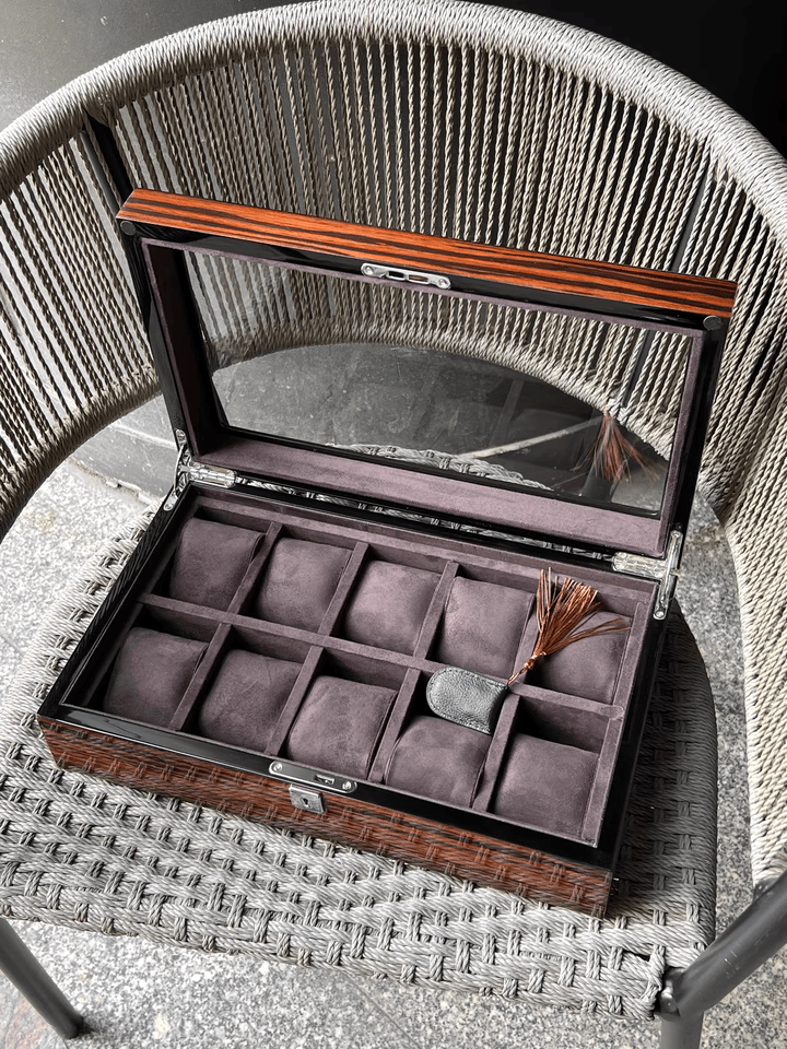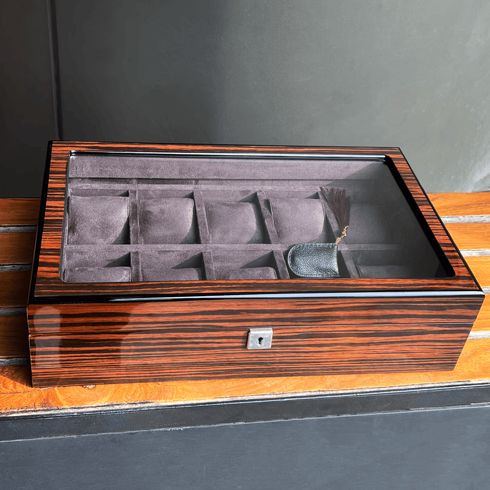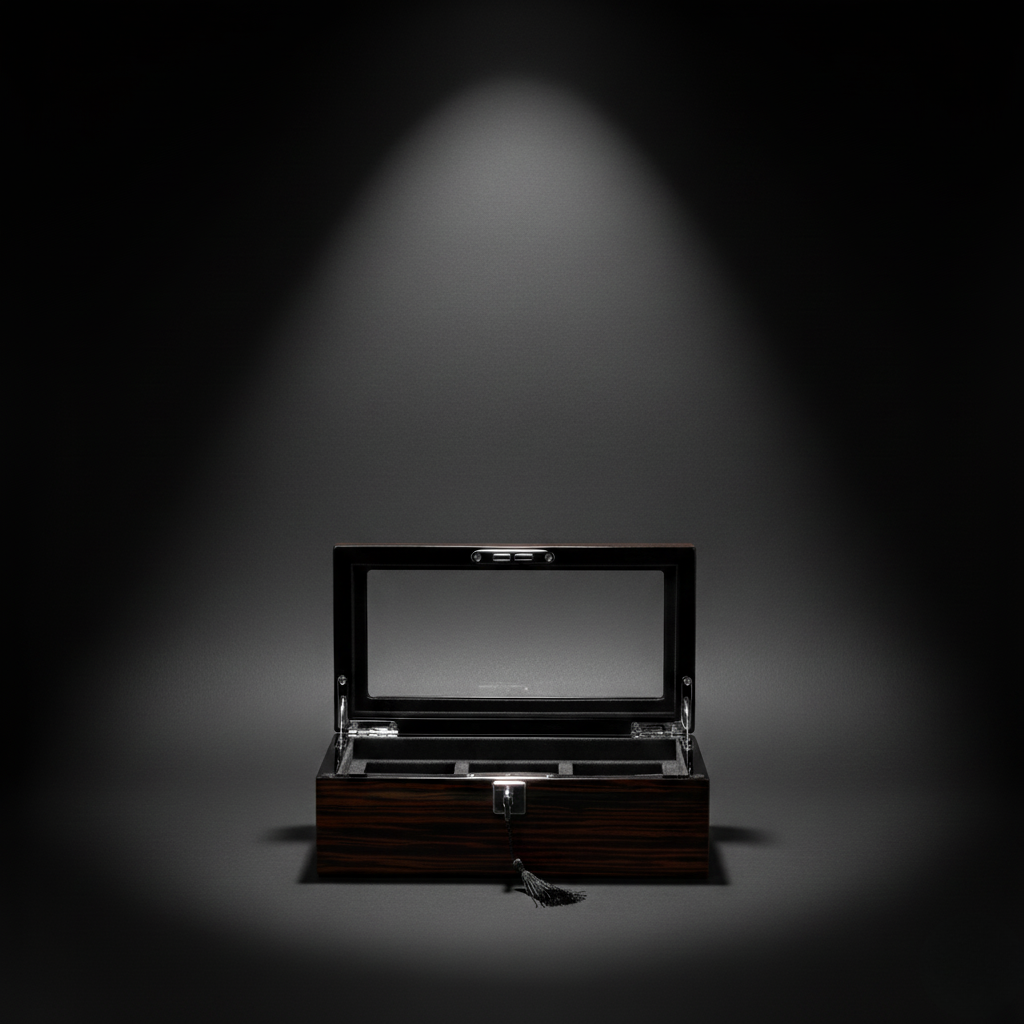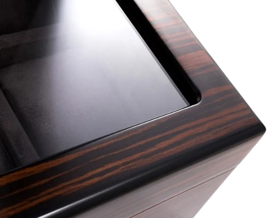 Bois éclatant, verre limpide et intérieur de qualité. Une boîte à montres d’un autre niveau.